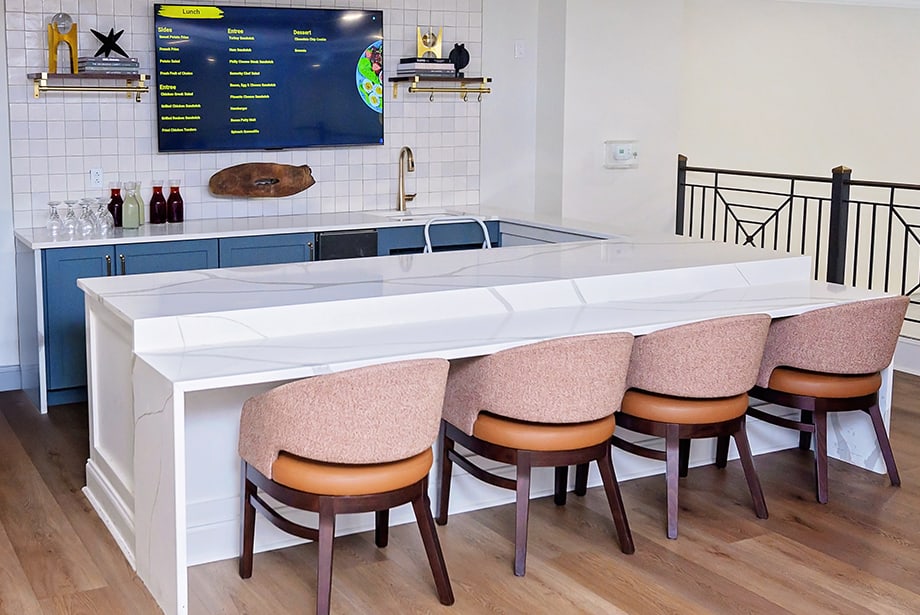 Our passionate culinary team, led by our executive chef, creates delicious and nutritious meals to delight the palate. Our dining areas range from château-style elegance to café-style warmth, serving as the perfect environment for any style of culinary gathering while our on-site baker creates delicious desserts every day. On every Sunday, brunch is open to family and friends to come experience what our culinary team has to offer.